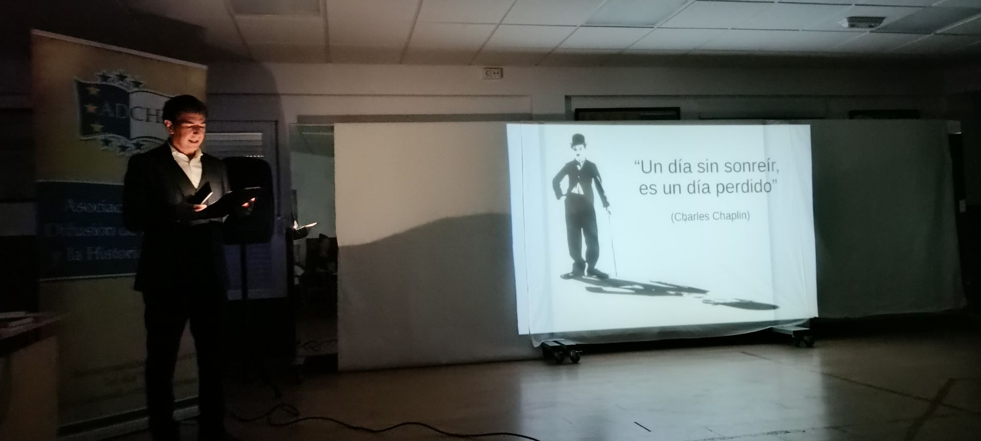 Tras la charla bien documentada sobre Chaplin y ya, con muchas ganas de ver alguna de sus obras cinematográficas, vimos en primer lugar: “Charlot artista de cine” (1916).