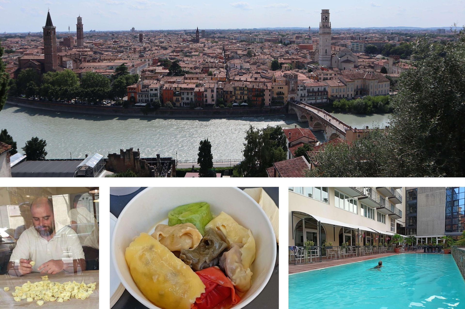 En nuestra tarde libre aprovechamos para seguir conociendo Verona. Visitamos su catedral, subimos al castillo, probamos su pasta fresca… Incluso dio tiempo para darnos un chapuzón en la piscina del hotel. No muy largo, porque esa noche teníamos una cita muy especial...